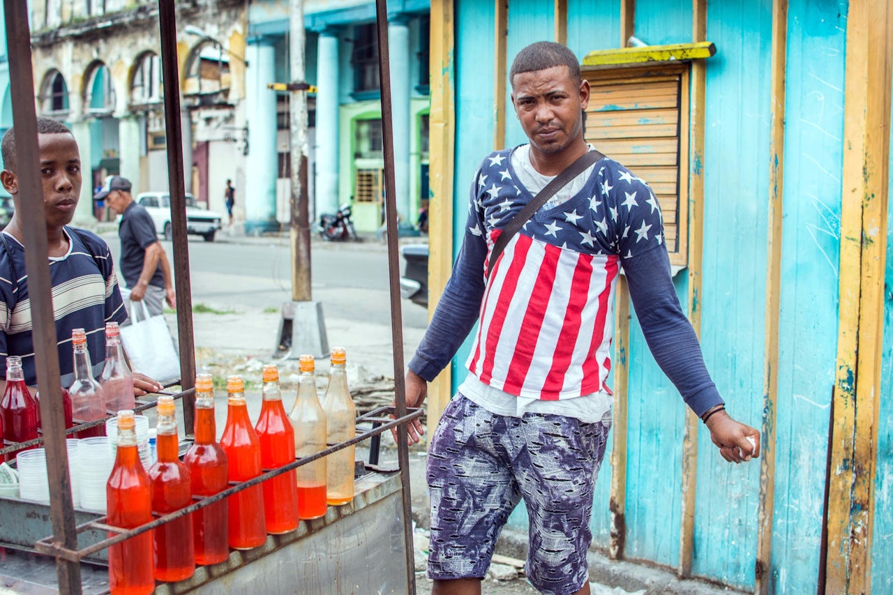 In countries whose citizens have to beg to be allowed to visit the U.S., the star-spangled banner is ironically inescapable, making a promise bigger than it can keep. In Cuba, a country rightly devoted to its own red-white-and-blue symbol, the American flag is unbelievably popular. The back-and-forth flow of friends and family members who live in cities like Miami and a recent softening in diplomatic relations have contributed, suggested one person I spoke to on a recent trip with friends. Over the course of a few days, we saw variations of the flag everywhere: on swim trunks at the beach, denim patches and bodycons in a Wi-Fi park, and hanging crisply from the windows of crumbling buildings. The ubiquity was a reminder of how easily a symbol can lose its meaning.