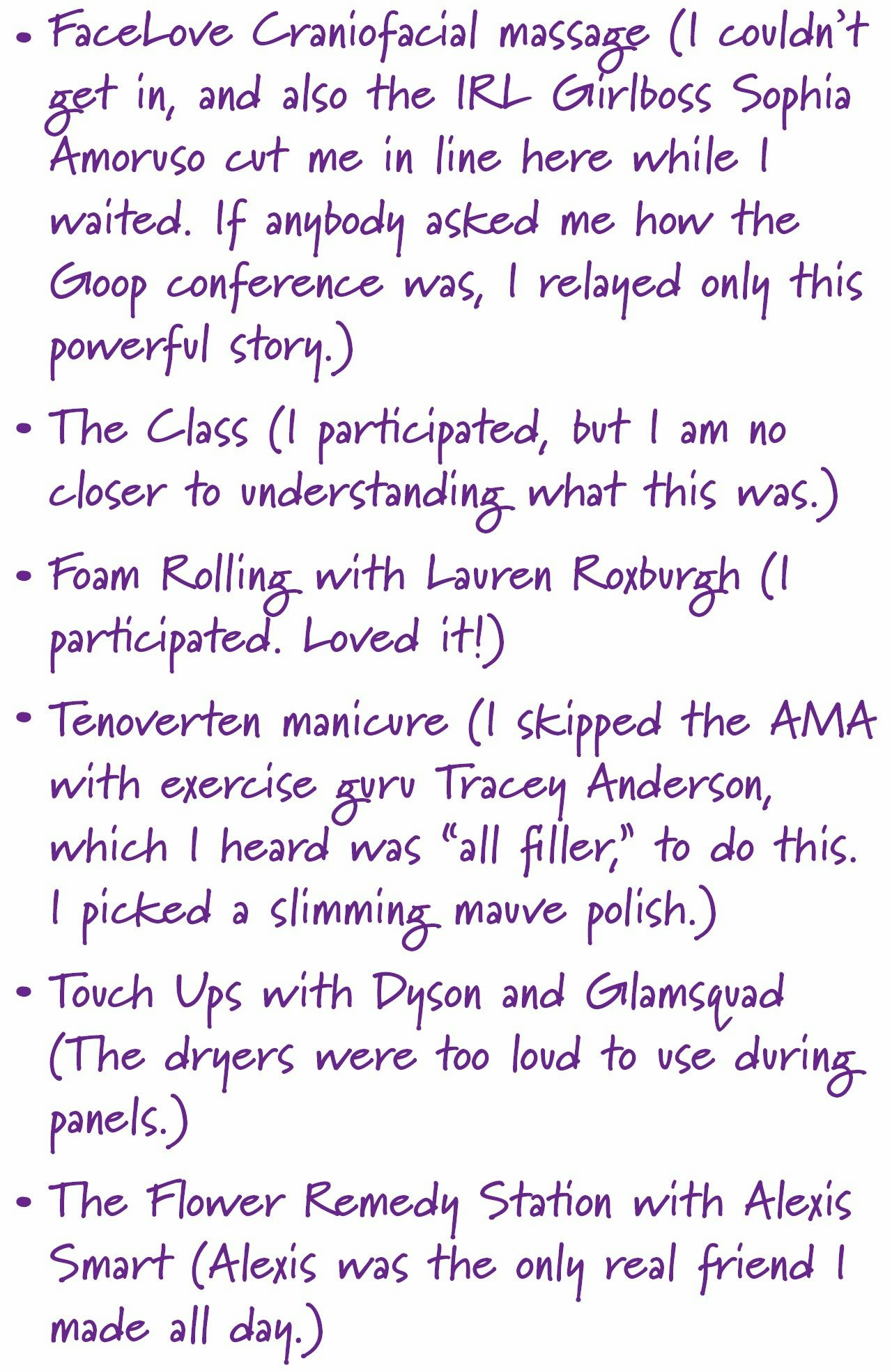 This is the comprehensive list of truths that I was taught at the Goop conference, and I took notes for ten hours straight. My handwriting is middling-to-illegible, but some of this stuff seems pretty suspect.