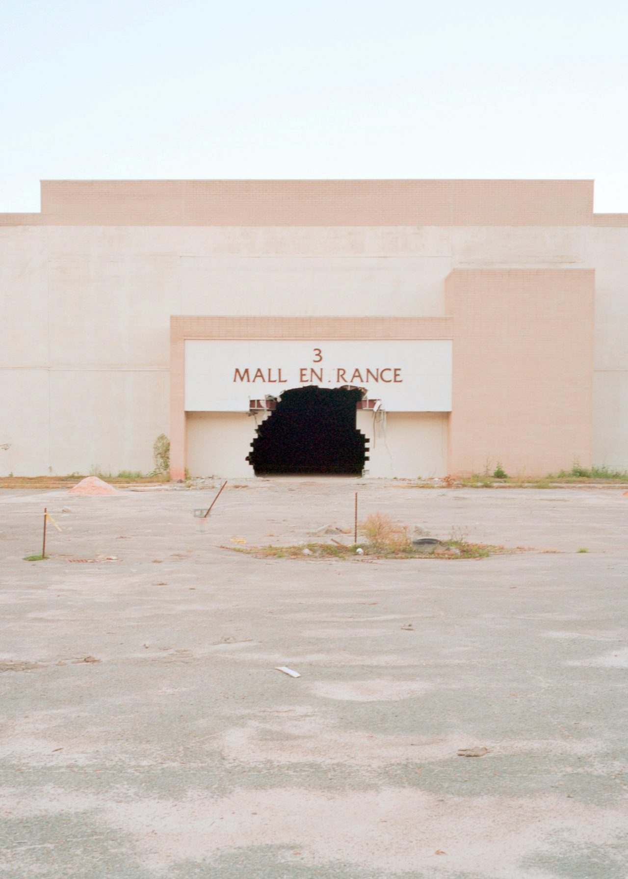 Photographer Tag Christof represents the latter. His curiosity has drawn him to Rolling Acres time and again in recent years. When asked what it is that brings him back, his response borders on poetic. “I’m looking for subtle signifiers of an exuberant bygone optimism,” he said. “Whether people realize it or not, the things I photograph are the direct result of a system that defines progress only in economic terms.” Born in New Mexico in the 1980s, Christof, who grew up visiting Villa Linda Mall in Santa Fe and Coronado Mall in Albuquerque, has spent the last five years crisscrossing the country in an effort to document architectural sites vanishing from the landscape. While his photographic project, dubbed America is Dead, doesn’t focus exclusively on shopping malls, they play a prominent part in illustrating his view of an America that no longer exists.