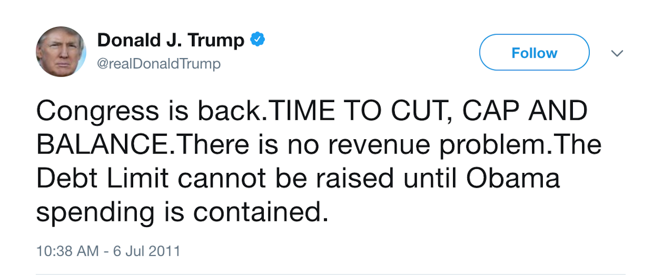 It’s all too familiar to us now. The alarmist tone, the arbitrary capitalization, the authoritative “hot take” on a complex issue squeezed awkwardly into 140 characters. This is the @realDonaldTrump of today, and it was born on July 6, 2011, at 10:38 AM.