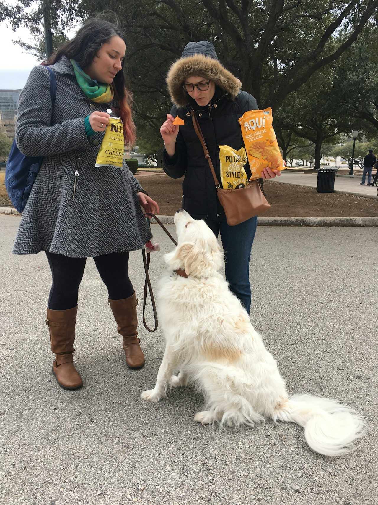 Kathleen Conti’s reasons for loudly eating chips in public were more serious than some of the other attendees. Conti, 28, arrived at the event with her large golden retriever mix, Maggie, who she explained was too excited to eat chips.