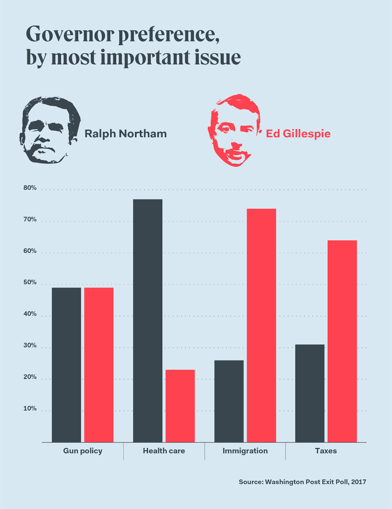 Down-ballot, Democrat Chris Hurst, whose partner was killed on camera by a man with a gun, won a House of Delegates seat while running on a strong pro-gun control platform. To Hurst, to the extent that a mobilization gap can be said to exist, it's actually the gun-control side that is leading the way. “It's those who are advocating for practical gun violence prevention that are marching, protesting, calling representatives and organizing more events,” he said. “We're not seeing that from NRA members or supporters of more gun proliferation.”