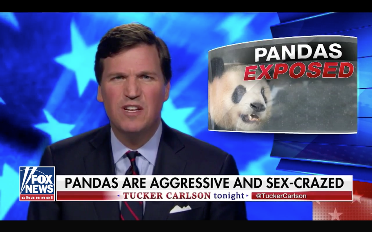 The right-wing pundit’s source material for the segment was a Wall Street Journal essay from zoologist Lucy Cooke), who seemed surprised to hear her words come out of Tucker Carlson’s mouth. Unfortunately for Cooke, an article about panda sex is perfect fodder for newscast kickers: it’s interesting and a little cheeky while still being informative. Doubly unfortunate is what happens to a fun kicker after an hour of Carlson’s cynical, sarcastic, and downright mean style of angry anti-news: it feels less like a sweet morsel at the end of a hearty meal and more like a spiteful lunchroom bully taking your pudding and smashing it over your head for his own deranged amusement.