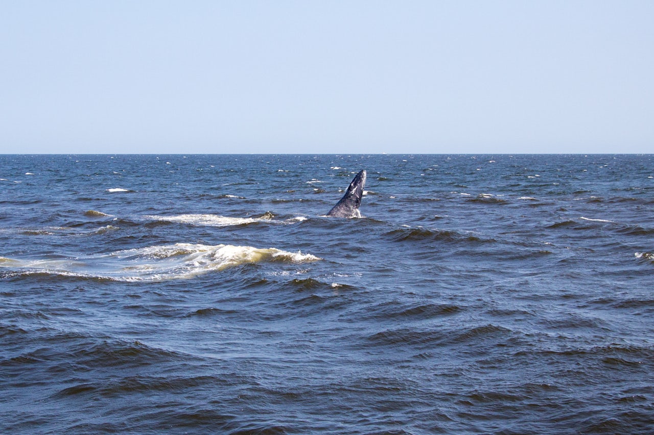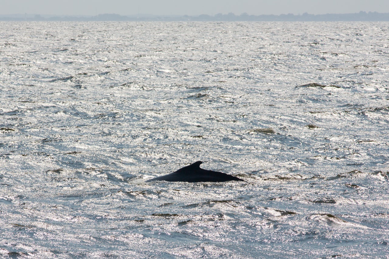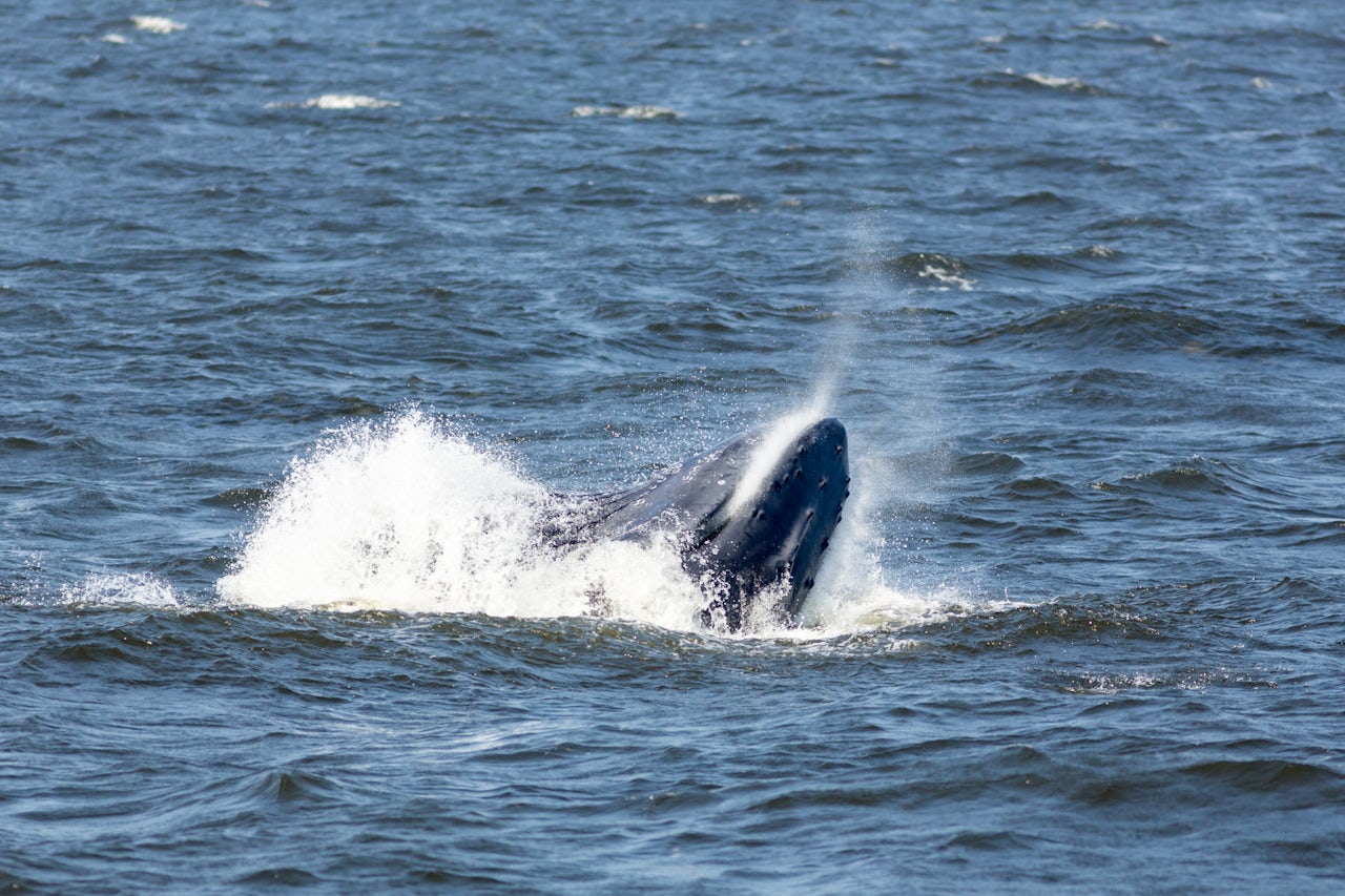 It didn’t take long before we saw a whale. First, there was a spout of mist a quarter mile off the starboard side, and then the eerie, beautiful curve of its massive back, and, finally, a fluke slipping under the surface. It’s quite literally hard to relate the excitement of the Atlantic Pearl at that moment. But I will try. My photographer, Andrew, sprinted headlong into a crowd of people leaning over the rail to catch a glimpse. Moments later, his face turned back to me and mouthed wow. It was as if the city — so recently an intimate part of our purview — had faded not just in stature but in significance, as if, in the presence of these 60,000-lb animals floating gracefully between their world and ours, we understood we had the potential, as humans, to be lesser-than.