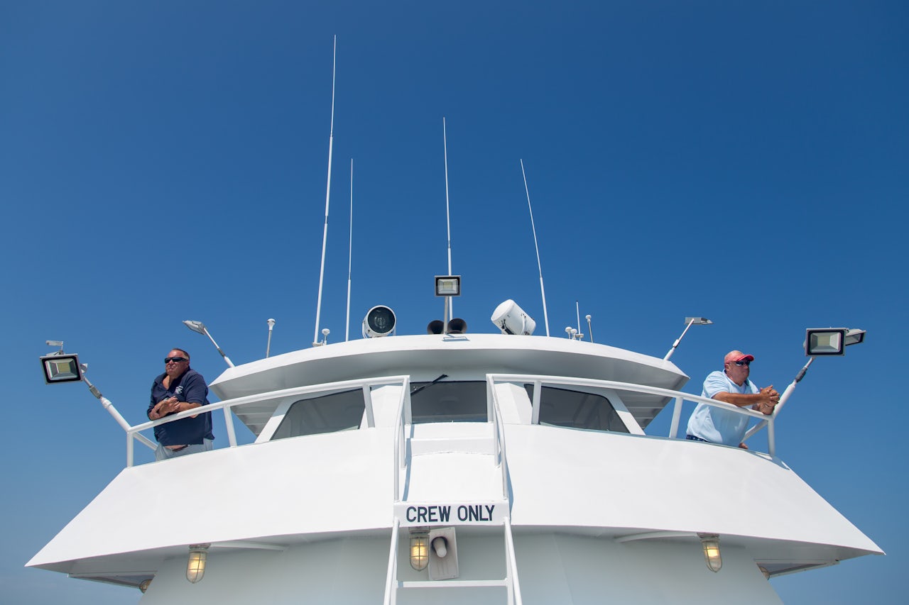“You may get the unique opportunity to experience whale breath,” Paul said later, speaking over microphone to a crowd of whale watchers aboard a commercial whale-watching ship named Atlantic Pearl, “Once you experience it, it is not to be forgotten.” After the drive from Staten Island, we were aboard a boat, ready to begin our journey from Riis Landing in the Rockaways about five nautical miles into the Hudson Canyon, a channel of deeper ocean where the the one shipping lane used for boats coming into New York harbor meets the wide-open ocean.
