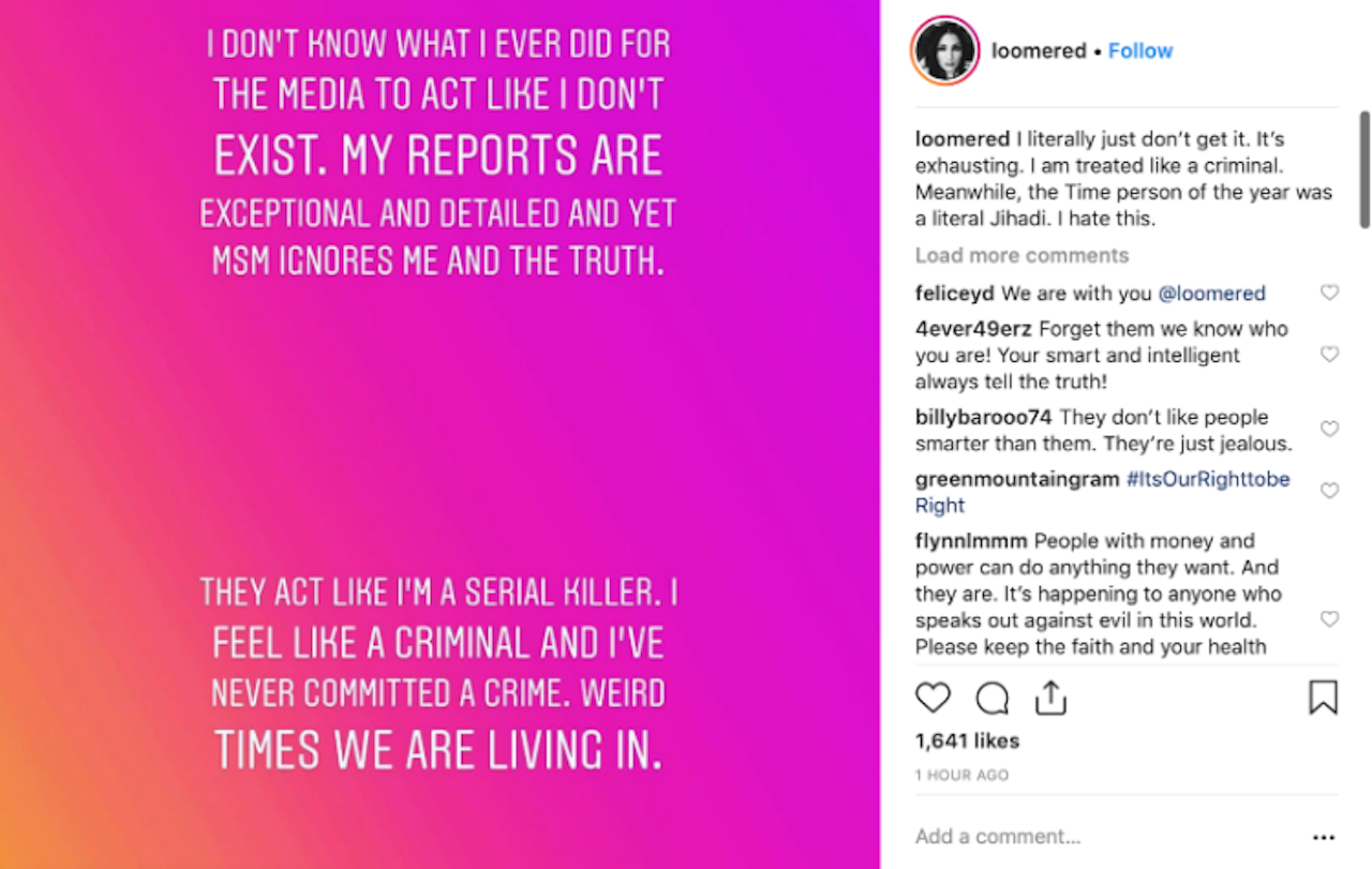 Loomer still uses Facebook, Gab, and Instagram, but her enthusiasm on these platforms is notably lacking. A recent Instagram post sums up the depressing reality of how Loomered Laura is by not being on Twitter.