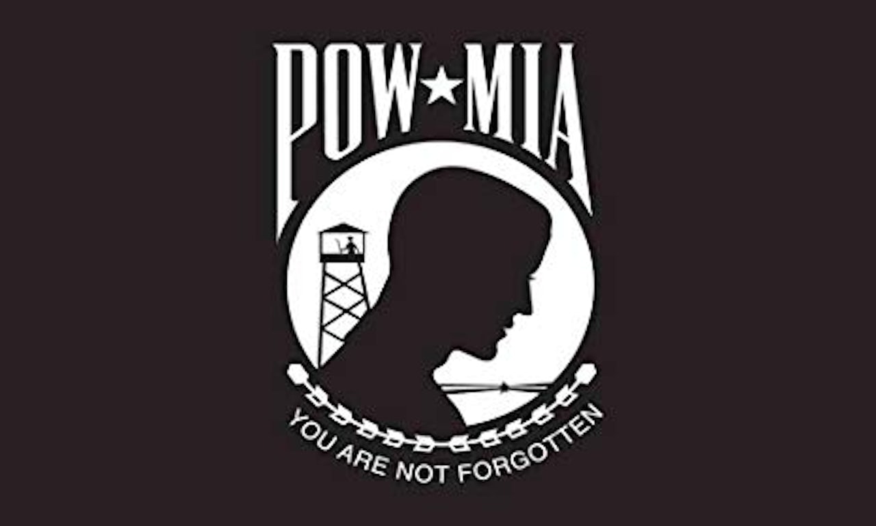 At least six days out of every calendar year, an unassuming flag flies over American military bases, state capitals, post offices, and even Guantanamo Bay, right below the Stars and Stripes. The intimidating, pitch-black rectangle holds a white oval in the center containing the sullen silhouette of an unknown soldier, flanked by a distant watch-tower and a barbed wire fence. The letters “POW” and “MIA” sit above the figure, with a star in between; below it are the words “You are not forgotten.”